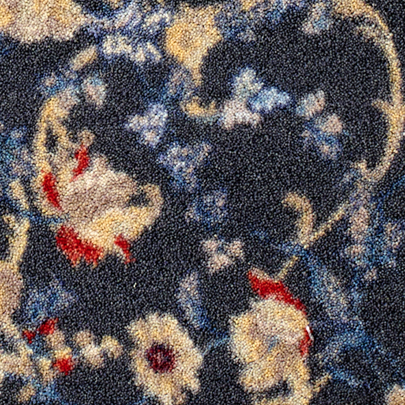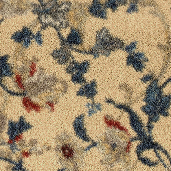 様式的な草花の柄を現代風にアレンジした一枚。華やかさを感じるデザインと肌ざわりの良いナイロンで仕上げたカーペットは、上質な空間づくりにおすすめです。